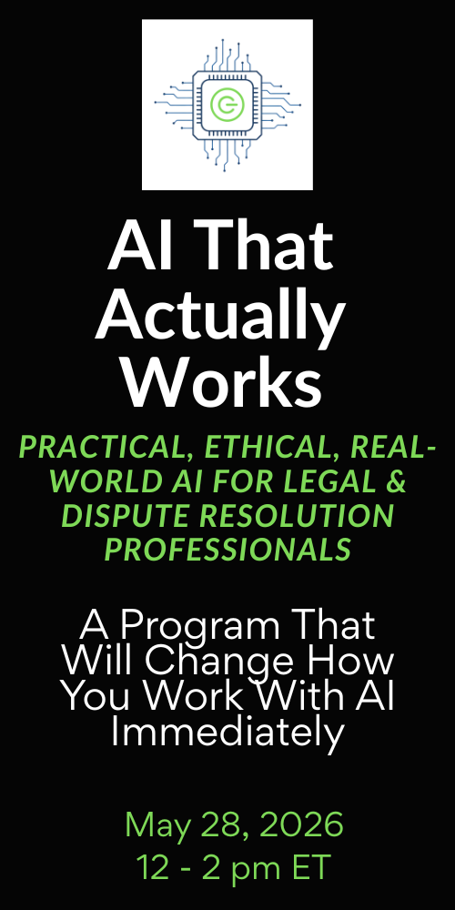 Susan is one of the foremost voices in the integration of artificial intelligence into legal and dispute resolution practice. An attorney and mediator with more than 35 years of experience, she serves as Immediate Past Chair of the ABA Section of Dispute Resolution and has delivered more than 185 programs on AI, technology, and practice development to legal professionals across the country. Susan is the creator of the 5 P's prompting framework and the Anonymization Rule, practical proprietary tools trusted by attorneys, mediators, and legal entrepreneurs who want to use AI effectively without compromising their professional obligations. She is a nationally recognized leader in Online Dispute Resolution and legal technology, known for cutting through hype with grounded, immediately applicable guidance. Her programs are built for experienced professionals who do not have time for theory and who need tools that work in real practice, with real cases, under real ethical standards. Susan is the founder of Guthrie Consulting and host of the Make Money Mediating podcast.
